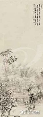 弘仁(1610—1664)明诸生,甲申后为僧,号渐江,一号无智,人称梅花古衲,俗姓江,名韬,字六奇,后改名舫,字鸥盟,安徽歙县人。少孤贫,性癖。明亡后清兵进逼徽州时,曾参加反清复明斗争,后于武夷山落发为僧,数年后重返故里,一心研习画学。善山水,初学宋人,晚法倪瓒,尤好绘黄山松石。