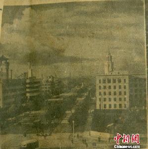 日本印制的中国地图背面照片之一:长春市大街一角。