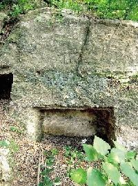 其中一方穴左上角刻着一个“金”字,另一穴右侧也有刻字痕迹:多道横划及纵贯其间的竖划构成,具体刻为何物,尚无法解释。