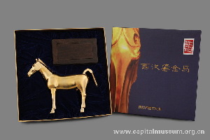 2014年是中国传统纪念的马年,由首都博物馆监制,北京市文博发展服务中心特别仿制了陕西出土具有代表性的“西汉铜鎏金马“。