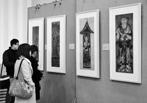 敦煌古画复制品吸引大学生驻足观赏 记者 尚洪涛 摄