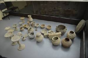 曹竹林先生多年来醉心于收藏古玩字画,现为黄骅市收藏家协会理事。据他介绍,这批陶器均为黄骅市本地出土文物,是他多年来自费收藏的,包括陶豆、陶钵、陶壶、陶罐以及画像砖等。其中一对陶豆高40厘米,豆盘直径24厘米,底足直径20厘米,豆柄上印有篆文,经专家鉴定年代为战汉时期。如此硕大的陶豆在河北地区较为罕见,对研究黄骅战汉时期的经济和社会发展状况以及制陶工艺等具有历史价值。