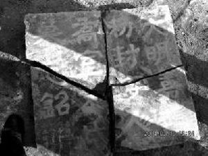 铜川一新建小区在处理地基时发现文化名人的墓葬,随后赶来的文物部门在开挖时,挖掘机却意外将一块完整的开墓石挖断为4块。