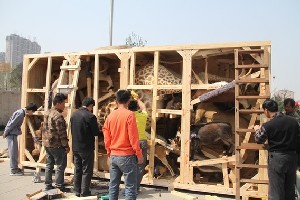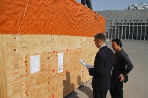 工作人员开始拆箱