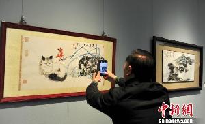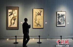 4月13日,“千古传奇·张大千艺术作品展”在山东美术馆展出,此次展出的93幅作品涵盖了张大千自1930年至1982年创作的山水、花鸟、人物画作和书法作品。图为,市民参观展览。 张勇 摄