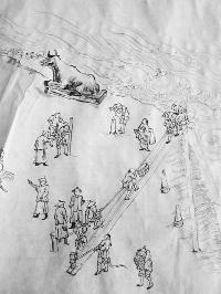 丁永祥还把扬州城中的风景名胜融入到画中,瘦西湖的白塔和五亭桥、文峰寺和文峰塔等在画中都有一席之地。丁永祥介绍,目前该画素描部分已经完成,着色后就全部完成了。