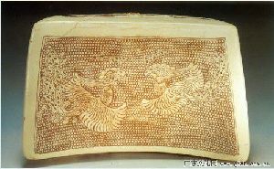 珍珠地划双凤纹元宝形枕