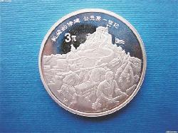 这枚长城纪念银币是中国人民银行委托中国金币总公司发行的中国传统文化系列币的领衔币,重15克,面值3元。长城银币的两面都采用了长城的图案,其中一面铸刻着一圈文字:“长城的修建 公元前一世纪”。