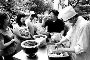 老字号桂香村邀请民间艺术家现场制作香囊和五色丝线、抖空竹、展示风筝,还有游人自行印制山东潍坊钟馗像木板年画、展卖桂香村粽子以及剪“五毒”剪纸等多种端午民俗活动,在端午节期间游园的同时还能学习到传统文化。