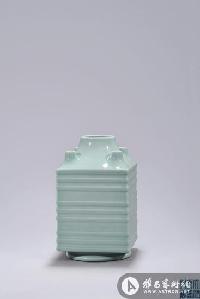 另外一件日本重要藏家旧藏“粉青釉五孔弦纹琮式瓶”也以920万成交。此瓶造型敦实沉稳,胎体厚重,而上部折肩五孔的设计又颇为别致,中间开一大孔,四角环绕四小孔,孔与器身相通,于稳重中透出灵动,瓶身凸出三组弦纹,令整体造型更富变化的韵律,禅意浓厚。通体施粉青釉,釉质肥润,釉色恬淡素净,极为雅致。此种器形创烧自雍正时期,乾隆时期则较为少见。