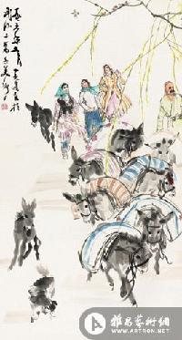 黄胄先生此作作於1975年,整幅画面布局精巧、用意严密、节奏明快、墨色灵动、题材丰富而又天真和谐,将其一生最拿手的毛驴、新疆人物和麻雀完美地结合在一起,相映成趣。可谓黄胄先生艺术巅峰期的逸品之作。