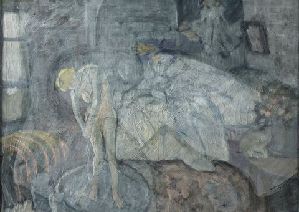 2008年,科学家使用红外线成像技术扫描毕加索的的作品《蓝色房间》,在图像之下发现了这个系着领结的男子肖像。《蓝色房间》完成于1901年,与画中所描绘的女子沐浴形象不符的笔触,令专家产生了怀疑,并最终发现了这幅画中画。现在困扰专家的问题则是画中男子的身份,专家已经否定了是作者自画像的可能。目前这幅作品正在韩国展出。