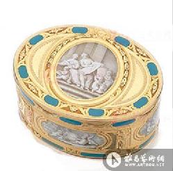 图为此次上拍的彩金珐琅精致鼻烟壶。