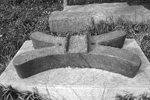 “灵谷寺双铁镇”位于灵谷寺景区志公殿前,其外形好似剪刀,四个向外翻的长圆角尺寸一样,正中间有两道凸起的直棱,直棱外侧各有一个圆孔。民间将“双铁镇”俗称为“飞来剪”,据了解,这种文物,全南京灵谷寺有一个,南博有一个,此外就只有湖南岳阳楼景区藏有三件。