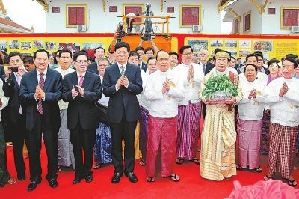 6月30日上午,正在我国访问的缅甸联邦共和国总统吴登盛一行专程到白马寺,出席“缅甸风格佛殿落成典礼暨安奉开光法会”。省长谢伏瞻,国家宗教事务局局长王作安等陪同并出席落成典礼。记者董亮摄