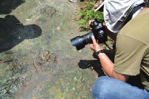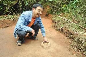 “这肯定是恐龙脚印。”当地村民李增广说,以前只有一个脚印露出来,大家都以为是鸭脚板印,小孩们放学回家还经常去那块石头上玩耍。因为修建公路改造,河沙把留存在石头上的脚印都掩盖了。这里到底有多少这样的足印?都在哪里?没有人说得清楚。据当地村民介绍,发现恐龙的地方为茶马古道边,古时候下赤水(贵州省赤水市),上叙永都会途经这里。