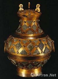 嵌琉璃乳钉纹鎏金铜壶 河北省博物馆