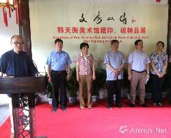 “文房双清”韩天衡美术馆藏印、砚精品展于7月18日上午在上海豫园听涛阁开幕。此次展览从韩天衡美术馆收藏中精选明清以来流派篆刻55方,韩天衡篆刻力作35方;宋元以来文人砚台30方,基本涵盖了流派篆刻史和文人用砚史上最辉煌的时期。展览将持续至8月17日。