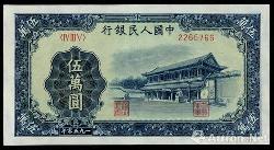 近年来随着中国在国际上地位的提高,人民币已走出国门,成为真正的全球货币。未来将会有越来越多的人使用和收藏人民币。回首人民币的诞生,早在抗日战争胜利后,各解放区人民政府就展开了统一本解放区货币的工作。1947年10月,中共中央在华北、西北、和华东三大解放区之间首先进行了货币统一工作,冀南银行、晋察冀边区银行、北海银行和西北农民银币按固定比价统一流通。 1948年12月1日,中国人民银行宣告成立,当日即由河北省平山县银行发行第一批人民币5元第一版、10元第三版和50元第一版,标志着第一套人民币正式诞生。结束了中国近百年来,外币、金银在市场流通、买卖的历史,在建国初期经济恢复时期发挥了重要作用。故第一版人民币因其特殊历史背景和稀缺性,极具投资前景。