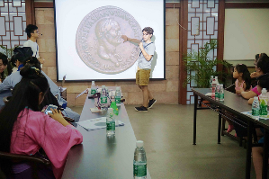 随后进行的是系列活动第一期——中外钱币交流。来自广州汉民族传统文化研习会(简称广汉会)、从事钱币收藏四十多年的郑教治老师用自己多年的珍藏为实物,向大家讲述我国历朝历代的钱币故事;随后广州博物馆宣教人员展示了广州博物馆各类钱币藏品,而外国志愿者们也借助精心准备的详实材料和图片,向大家介绍了自己国家的钱币发展历史和使用情况。他们还掏出身上携带的纸币和硬币,供现场小朋友和家长们观看触摸,亲身感受各式外国钱币的异域色彩。