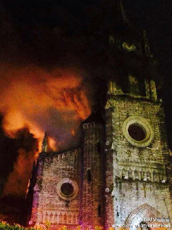据宁波电视台消息,建于1872年,已有140多年历史的浙江省重点文保单位宁波老外滩天主教堂今(7月28日)晨0:50左右着火。经消防部门全力扑救,1:30火情基本控制,2:30火势基本扑灭,过火面积约500平方米,无人员伤亡。3:15分左右,火势完全扑灭。目前,火灾具体原因正在调查中。