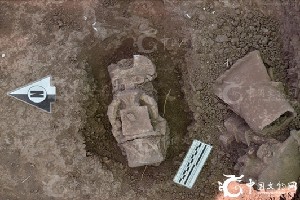 在发掘遗址的另一处,他们还找到了其他相关陶器制品,包括一件坐于宝座之上的人物造像,以及一个盛满海龟和其他动物的倒扣碗,其中混合着一些类似人形的物件。