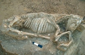 古墓中最先被挖掘出的完整的马匹残骸(网页截图)