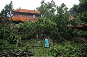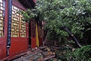 2014年8月18日岳麓书院内古树压倒大成殿致一死两伤。