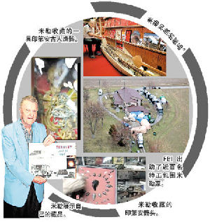 由于涉嫌违反美国文物收藏相关法律,今年4月2日,FBI出动了近百名特工和博物馆专家、考古学家、人类学家,同时派出多辆货车、直升机,将米勒的家重重包围。FBI甚至封锁了通向米勒家半英里的道路,以防止媒体“偷窥”。