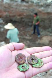 1日上午,市考古所和胶州博物馆两级文物部门,对胶州市广州路一处工地探测时意外发现了两处清代古墓葬。其中一处墓葬内出土了5枚清顺治和康熙年间的铜钱,这为墓葬具体断代提供了实物依据。