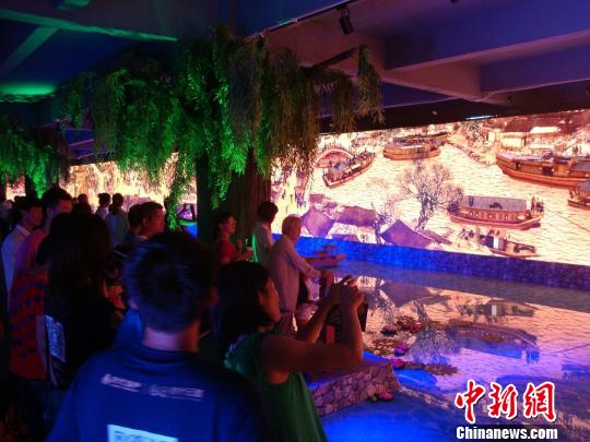记者现场看到,3D技术手段使得画面动起来,在昼夜更换的场景中,客官骑马出城去,樵夫推柴木进了城,农民、轿夫、纤夫、商贩、僧侣和说书人近千个不重复的人物均栩栩如生在画面活动着,前来观看的游客对此赞不绝口,或高举着相机、手机拍照,或久久沉浸在画作的意境中不愿移动,细细地体验着“穿越”到北宋京城汴京的乐趣。