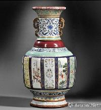 据悉,“各色釉大瓶”之“瓷母”收藏在北京的故宫,全世界鲜有发现,曾被认为是一件孤品。然而在美国上拍的这件“瓷母”,与故宫的各种釉彩大瓶极为相似并略高出厘米有余,显现出同样的“瓷釉集大成”气象。器物在施以各色釉的瓶身上配以螭耳,其上有12幅长方形开光,内绘粉彩吉祥图案,其中6幅为写实图画,分别为“三阳开泰”、“吉庆有余”、“丹凤朝阳”、“太平有象”、“仙山琼阁”、“博古九鼎”,另外6幅则为蝙蝠、如意、万字、螭龙、灵芝、花卉等吉祥纹饰。虽然该拍品局部出现裂缝和划痕并曾经过修复,但它的卓尔不凡一定引起关注。
