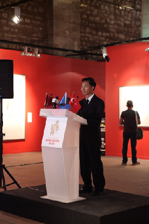 开幕式隆重而热烈。郁红阳大使发表了声情并茂的讲话。他说:“中国和土耳其,既是历史文明古国,又都在变革图强、励精图治、不懈追求,以实现自己的百年梦想。土耳其将在2023年迎来共和国一百年,一个新的土耳其将屹立在世界强国之林;中国将在2049年迎来自己的共和国百年,一个富强、民主、文明、和谐的中国将呈现在世人面前……水墨画,是中国传统绘画艺术样式,更代表一种文化精神。如果说奥尔罕帕慕克的小说《我的名字叫红》所描绘的细密画代表了土耳其文化的多样性和兼容并蓄,那么,中国水墨画虚实结合、浓淡相宜的特点则代表了一种东方的意象之美和写意精神。细密画和水墨画,两种画风各有自己深厚的传统,两国都有艺术家在坚守着传统,却从来不缺借鉴、学习和吸纳创新。正如孔子倡导的‘和而不同’理念,人类文明正是因其差异性和多样性而显得丰富多彩,博大而精深。”