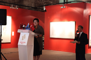 安远远代表主办方之一的中国美术馆致词。她说:“不同的国家、民族都有自己的文明或文化,都有自己的语言和风俗。但造型艺术不需要翻译,因为它可以用最直接的方式贴近人的心灵,进而沟通人的心灵。” 安远远还引用范迪安馆长的话,指出,本次展览的参展艺术家都在中国的美术院校接受过系统的专业训练,而且目前仍有许多人仍供职于中国的艺术院校或创作机构。因此,在米玛尔·锡南美术大学文化艺术中心展示他们的作品,有助于两国高等艺术院校的对话,有着艺术与教育的双重意义。