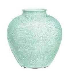 清乾隆“御制粉青釉浮雕龙纹罐”