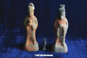 在长达一个多月的发掘中,考古人员发现了100多件精雕细刻的陶俑和瓷器。这些陶俑有形态各异的文官俑、伏地俑、人首蛇身俑,大多高约1尺,小的则只有两三厘米高。而随葬的瓷器,则囊括了碗、碟、花瓶等种类。
