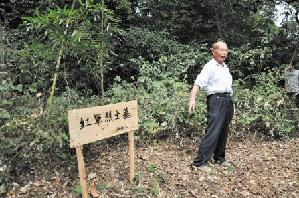 楠市镇楠市村曾兆明老人在后山指认红军墓。