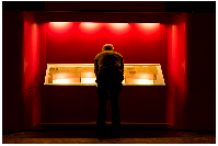 据悉,在此次墨西哥国家人类学博物馆举办的《墨西哥抄本:回忆与智慧》 临时展览中,共展出了 44 部由前哥伦布时期 (pre-Columbian) 各族群创作完成的珍贵抄本藏品,其中包括玛雅人、印第安土著普勒佩查人 (Purepechas) 和萨波特克人 (Zapotecos) 等。图为 2014 年 10 月 9 日,一位游客正在该展览中鉴赏利用欧洲纸张制成的《马丁·德拉·科鲁兹·柏迪亚诺》 (Martin de la Cruz Badiano, 1552) 抄本。此次展览呈现了来自不同土著族群的各种前西班牙时期和后西班牙时期的抄本珍品。图片来源:奥马尔·托雷斯。