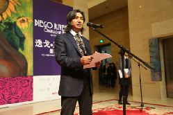 10月28日晚6点,“迭戈·里维拉,墨西哥的骄傲”展览开幕式在中国美术馆举行。中国文化部外联局副局长孙建华,墨西哥驻华大使温立安,中国美术馆馆长吴为山,中国美术家协会秘书长徐里,以及各国驻华使节,新闻媒体等300余名嘉宾见证了这一重要展览。中国美术馆常务副馆长马书林主持开幕仪式,中国美术馆吴为山馆长首先致辞,他高度评价了迭戈·里维拉在植根墨西哥民间传统精华的同时学习意大利古代湿壁画艺术,并吸收高更、塞尚以及立体主义的艺术观念和方式,形成了充满生命活力的新风格方面所取得的艺术成就,称赞他以自己对生活敏锐的观察和具有感染力的艺术,表现了墨西哥的文化与历史,表现了以人为中心的社会生活,阐释了他对社会的责任和鲜明的主张。吴为山馆长相信展览将对中墨两国友谊发生重要的影响,并期待在适当的时候引进里维拉的妻子弗丽达的作品展。中国文化部外联局副局长孙建华的致辞中特别提到了此次展览是为配合墨西哥总统访华并出席APEC会议的重要文化项目,体现了中墨两国政府对于开展双边文化交流合作的高度重视与支持,有利于增进两国人民的相互了解与传统友谊。墨西哥驻华大使温立安在致辞中向为此次展览做出努力和贡献的墨西哥外交部、国立美术局、维拉克鲁斯州政府、州文化局、中国文化部、中国美术馆表示诚挚谢意。
