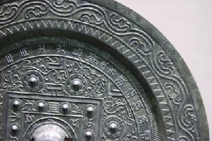 在这个时期,扬州铸造的汉唐铜镜数量多、品类丰、纹饰秀美。此次展出的60面汉唐铜镜,它们以少见的题材、特殊的布局形式,以及别致的主题纹饰而极具地方特色。其中,汉朝铜镜有“日光”铭草叶纹镜、“昭明”铭连弧纹路镜、星云纹镜等,唐朝铜镜有瑞兽葡萄镜、月宫飞龙镜、雀绕花枝镜等,呈现了扬州自汉唐以来卓越的制造工艺以及深厚的文化积淀。