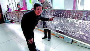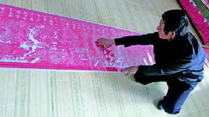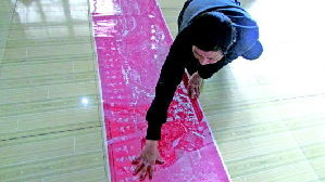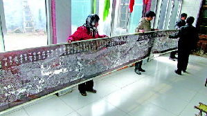 长8米的《清明上河图》剪纸画要四个人才能拿得过来。
