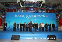 由国务院南水北调办公室、北京市人民政府为迎接南水北调中线工程全线通水而联合主办的 “饮水思源•南水北调中线工程展览”于2014年12月15日在首都博物馆隆重开幕。展览地点为首都博物馆地下一层A厅及水景庭院。展览旨在借助中线工程通水、圆梦的契机,进一步提高社会各界对南水北调的科学认知,提升全社会饮水思源意识,坚定民众道路自信、理论自信、制度自信。同时,也希望借助此次展览,向为南水北调工程建设作出贡献的社会各界致敬,引导全社会爱水、惜水、护水、节水。