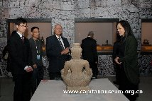 首都博物馆郭小凌馆长主持本次开幕式,出席开幕式的嘉宾有:柬埔寨王国政府文化艺术部秘书长楚什•费欧文先生、柬埔寨王国政府文化艺术部副秘书长、内阁司长温•蒂姆先生、柬埔寨王国政府外交及国际合作部顾问、柬埔寨王国政府文化艺术部评委会成员丹•乌萨先生、柬埔寨王国政府文化艺术部遗产司副司长亨•索法第先生、柬埔寨国家博物馆馆长、柬埔寨王国政府文化艺术部博物馆司司长贡•维瑞克先生、柬埔寨驻华使馆二等秘书桑莫尼先生、国家文物局副局长顾玉才先生、北京市人民政府外办主任赵会民先生、中国文化遗产研究院院长刘曙光先生、北京市文物局局长舒小峰先生、北京华协文化发展有限公司董事长汤毅嵩先生等。国家文物局副局长顾玉才先生与柬埔寨王国政府文化艺术部秘书长楚什•费欧文先生先后为展览致辞。