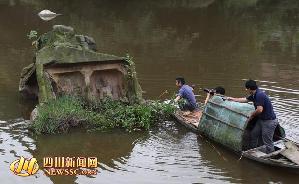自贡河中惊现“菩萨石” 雕刻天龙八部等题材