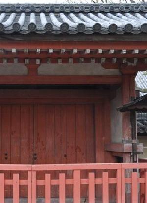 图为世界遗产东寺的大门,被人泼上了油迹