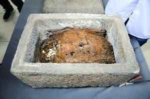 记者从自治区文物考古研究所了解到,集宁路古城遗址旗杆山墓地出土了元代石棺,并进行了室内开棺清理。