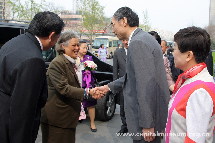 下午2:45,公主车队抵达首都博物馆。先期到达的泰国副总理及夫人、泰国文化部部长、泰国外交部次长及夫人(H.E Mr. Norachit Sinhaseni and Spouse)、泰国驻华大使(H.E. Mr. Theerakun Niyom)与中国人民对外友好协会会长李小林、文化部代表、北京市外办代表、外交部前驻泰国大使、首都博物馆馆长郭小凌等人一同到博物馆正门前迎接。