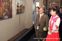 诗琳通公主为首都博物馆题词后与中方代表进行了亲切的交谈并互换礼物。15:20公主为《诗琳通公主摄影展》剪彩,并与来宾一起参观了摄影展。随后,公主一行在讲解员的带领及郭馆长的陪同下参观了《京城旧事:老北京民俗展》、《古代瓷器艺术精品展》、《古代佛像艺术精品展》等我馆基本陈列展览。