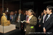 2015年4月4日下午,泰国公主诗琳通、泰国副总理兼外长及夫人(H.E. General Tanasak Patimapragorn and Spouse)和泰国文化部部长(H.E. Mr. Veera Rojpojanarat)等一行人来到首都博物馆,参加该展览的开幕式并参观了首都博物馆。