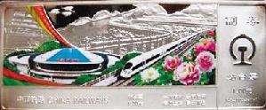 图为信宝忠收藏的建国60周年专制银砖铁路纪念站台票。